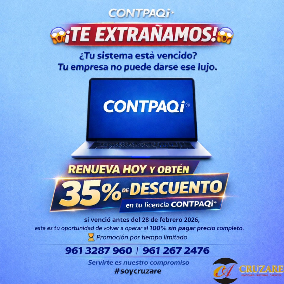 Ventas: 961 108 7191, Soporte Control2000: 961 459 9942 y Soporte CONTPAQi: 961 328 7960